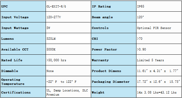 injection-molded, thermoplastic ABS housing.Green/red exit signs We promise 5 years warranty for the electrical parts and housing, 2 years warranty for battery.Led red exit signs Long-lasting Epstar SMD LED light.