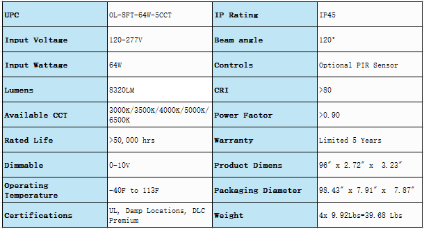 CCT and Wattage TunableDLC Premium 130LPW (160LPW optional)