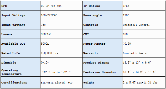 Ultrathin Profile 2nd Generation Gas Station LED Canopy Lights, 120lm/W, 75W