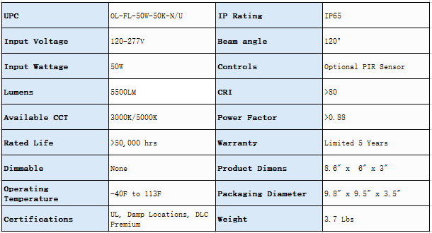LED FLOOD LIGHT 50W 30K/50K KNUCKLE/U-BRACKET