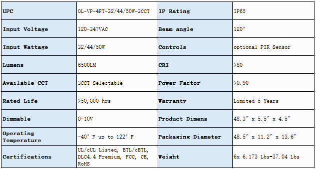 SKU: OL-VT-4FT-32/44/50W-3CCT-EM Category: